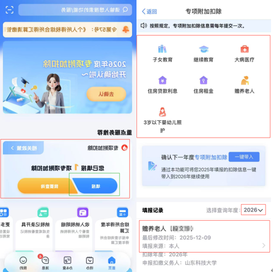 根据国家税务总局相关规定,2026年度个税专项附加扣除信息确认工作已正式启动,事关大家的个税缴纳与实际收入,务必高度重视!请各位教职工于2025年12月31日前在个人所得税APP完成确认。